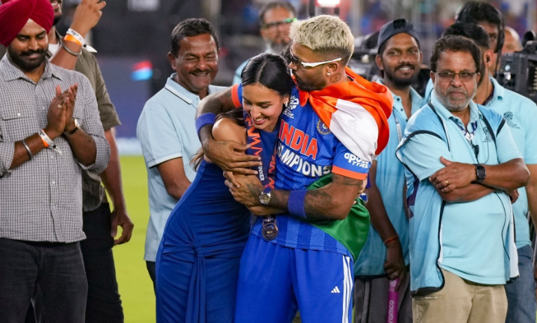 Hardik Pandya celebrating the T20 World Cup victory with his girlfriend Mahieka Sharma. pic.twitter.com/IhJGFFlvP6